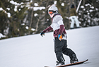Snowboardeur descendant une piste enneigée à Prabouré.